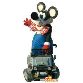 Rato fantasia de mascote com um carro